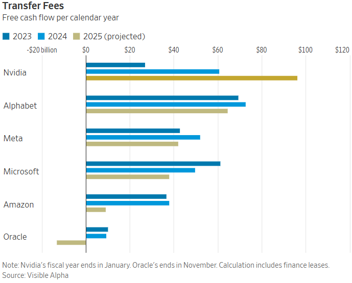 Nvidia’s explosive growth has created a new challenge: how to deploy an unprecedented amount of cash in a world where scale itself has become a regulatory constraint. The chart below, from The Wall Street Journal, illustrates Nvidia’s massive free cash flow growth. However, traditional uses of its cash, such as large acquisitions, are increasingly difficult given heightened scrutiny around AI infrastructure and market dominance. Nvidia’s cash strategy is now being shaped as much by regulation as by opportunity.