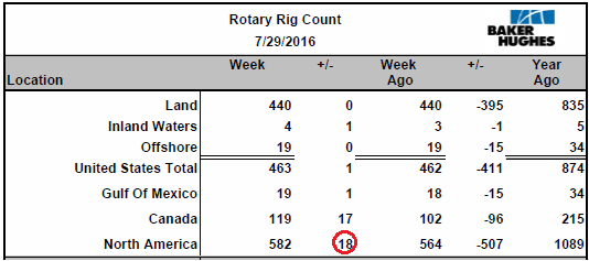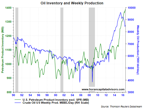 And finally, a silver lining may be appearing in that weekly oil production has been in a year long decline. Unfortunately, overall inventory levels continue to increase and rig count has turned higher. If this decline in production is sustained, oil price stability could be realized and thus a continued advance in equity prices.