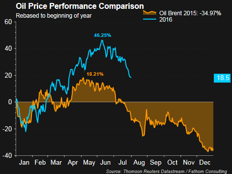 An uptick in rig count and continued supply growth has negatively impacted crude's recent performance. Crude's performance in 2016 seems to be following a similar path as crude's price movement in 2015.