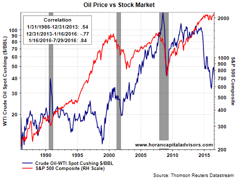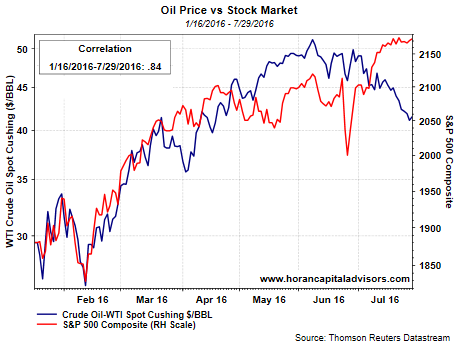 The equity market has a heightened focus on crude given the positive correlation between crude oil prices and the S&P 500 Index. Going back to 1996 the correlation of crude and the S&P 500 Index is +.37. During the fracking boom this correlation broke down and had a correlation of minus .77. In 2016 though, the correlation between the S&P 500 Index and oil again turned positive at a positive .84. So, this generally positive correlation between crude oil prices and the S&P 500 Index helps explain the investor focus on crude oil prices relative to equity prices.