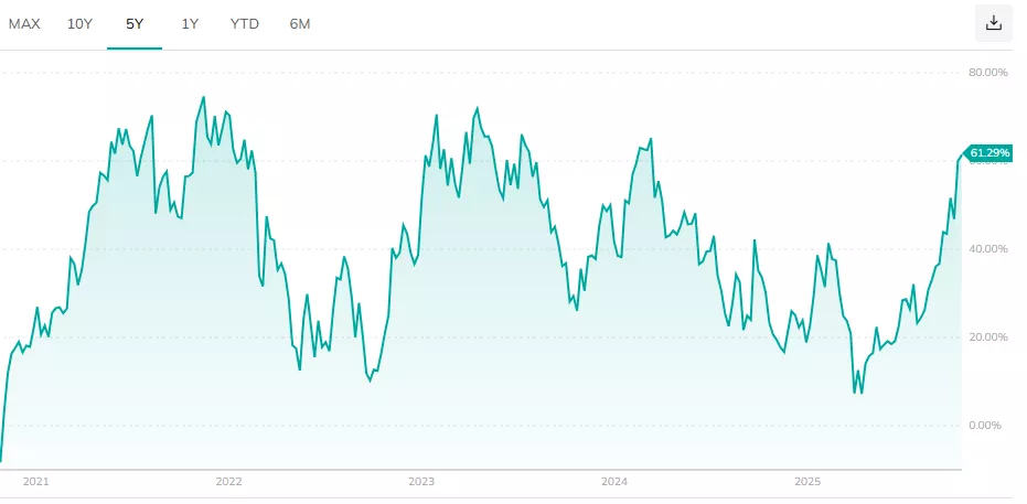As illustrated in the portfolio performance chart below, the Portfolio peaked back on November 14th, 2021, went DOWN 54.5% by April 7th, 2025, and is now UP 65% as of October 22nd.