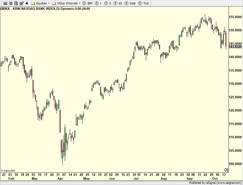 Finally, the regional and smaller banks took it on the chin of late. Great earnings were a selling opportunity and some very loud and vocal in the media were gushing about the banks just over a week ago.