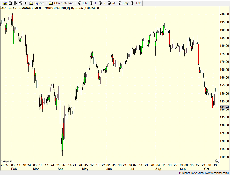 For months, the alternative asset managers have been falling and hit with the ugly stick. Ares, KKR, Blackstone and Blue Owl are among the major ones. I had no idea why other than thinking there was an interest rate dislocation somewhere. That assumption was wrong.