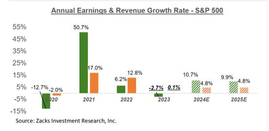 The chart below shows the earnings and revenue growth picture on an annual basis.