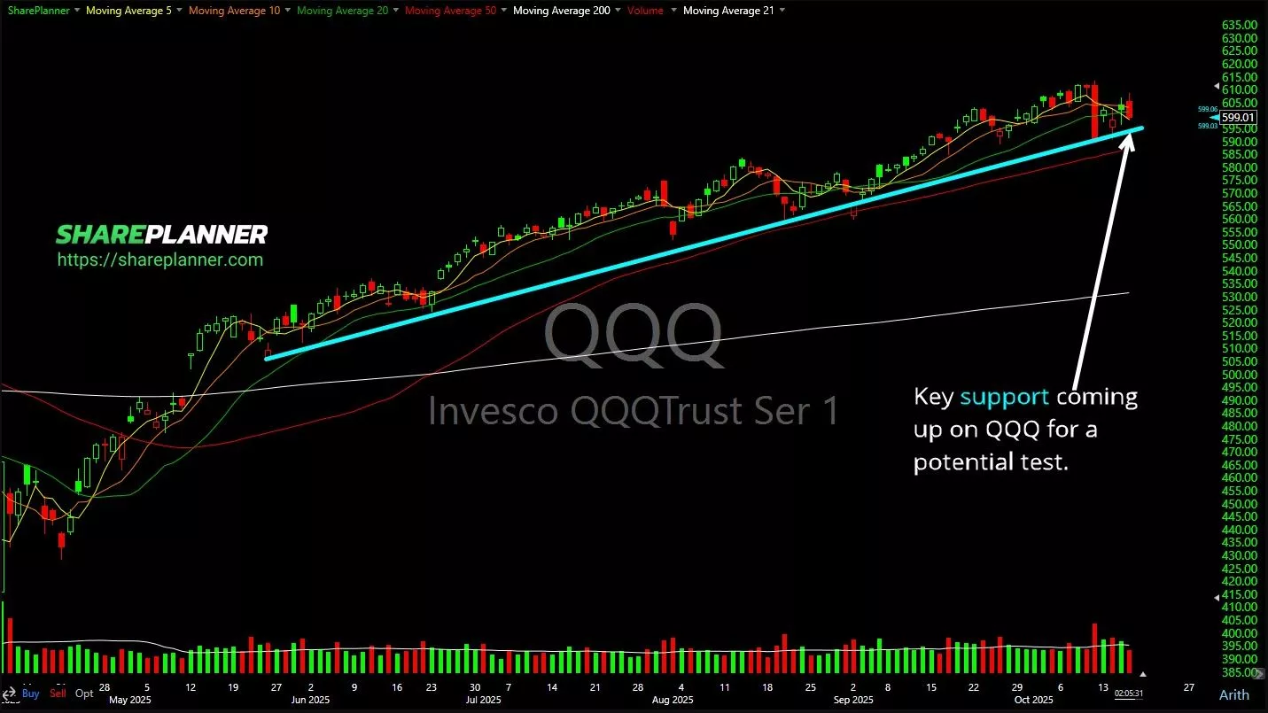 Nasdaq 100 (QQQ) setting up for a pullback to key support.