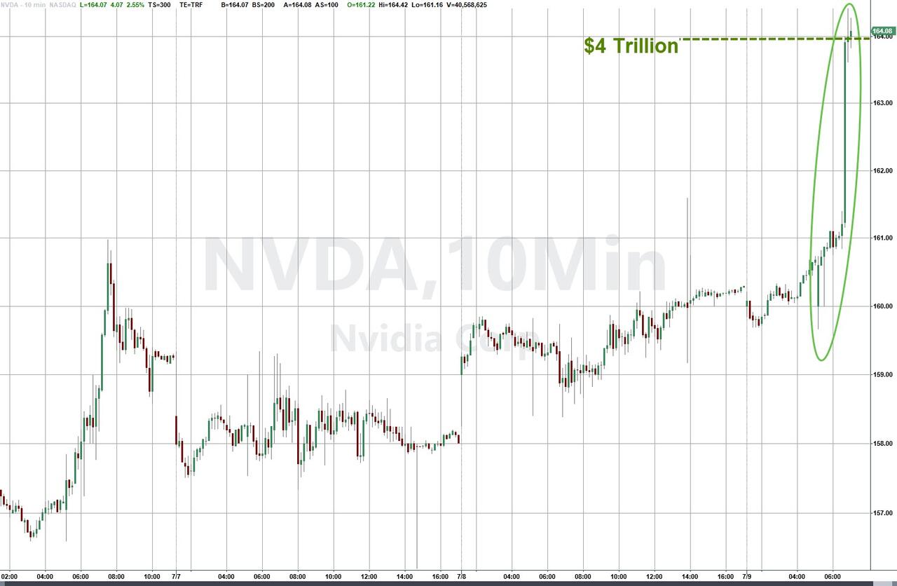 For the first time ever, a company has achieved a market capitalization of $4 trillion. And that company is none other than Nvidia (NVDA)...