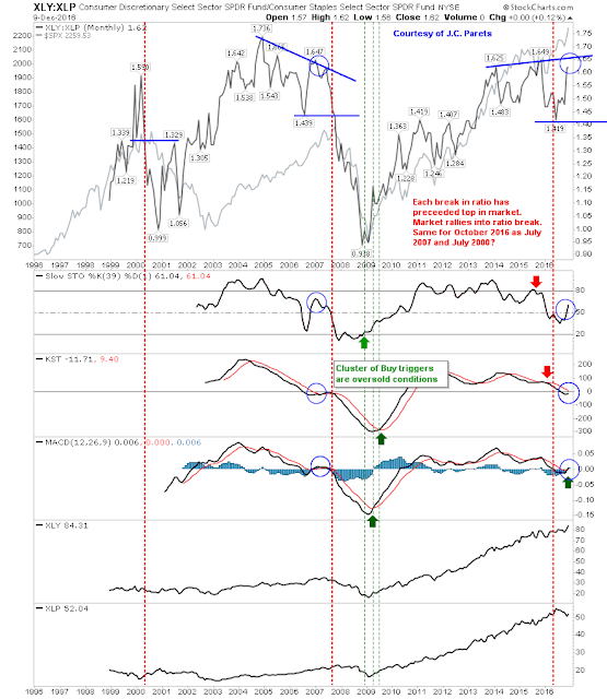 The longer term picture has some warning signs, but nothing to suggest concerns until the New Year rolls in. The Staples:Discretionary relationship is in a zone similar to early 2007, but it was a number of months before the market peaked, and even then, markets are unlikely to deliver a 2008 style meltdown. What I would want to see would be a broad sell off at around 30% off highs and markets meeting the loss-relative-to-the-200-day-MAs, as marked in my tables below.