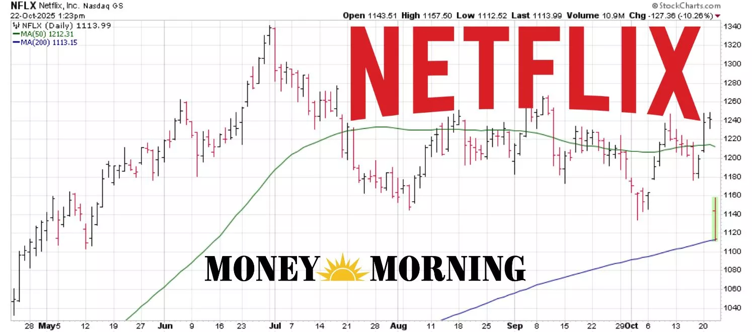 Netflix (NFLX) stock fell by 10% today after the company missed earnings expectations. It reported EPS of $5.87 for Q3 2025 against estimates of $6.94 to $6.97. Revenue met expectations and grew 17% year-over-year.