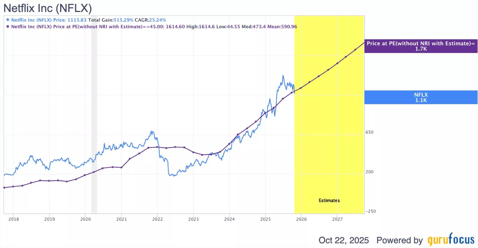 If Wall Street holds the premium, NFLX stock can end up around $1.7k or higher by 2028 if it keeps beating estimates (minus non-recurring items).