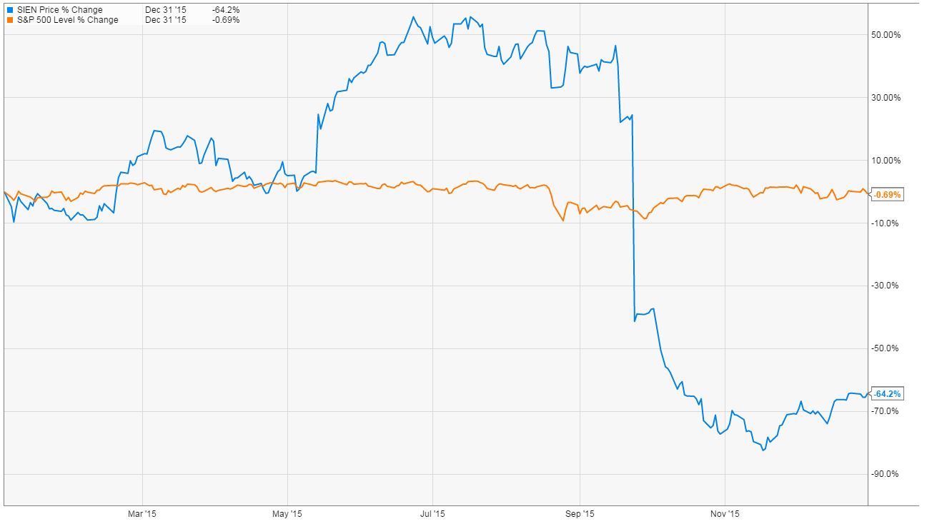 Shares of Sientra (SIEN) suffered a disastrous 2015 after its Brazil-based contract manufacturer, Silimed, had its CE Mark for making medical devices suspended by the UK and Brazil, effectively pausing the sale of Sientra's products. In addition, the company completed an equity raise, and a fire roared through Silimed's main building where Sientra products are produced...tough break.