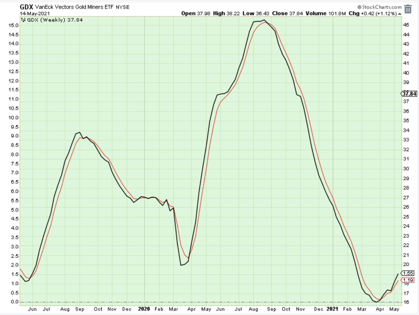 Last week, I said that a new short-term uptrend had started on Friday, May 7, but that was a bad call. However, a week later on Friday, May 14, a new short-term uptrend has started - although it is not yet confirmed by some of the important indicators. In other words, watch for signs that this is another fake-out rally.
