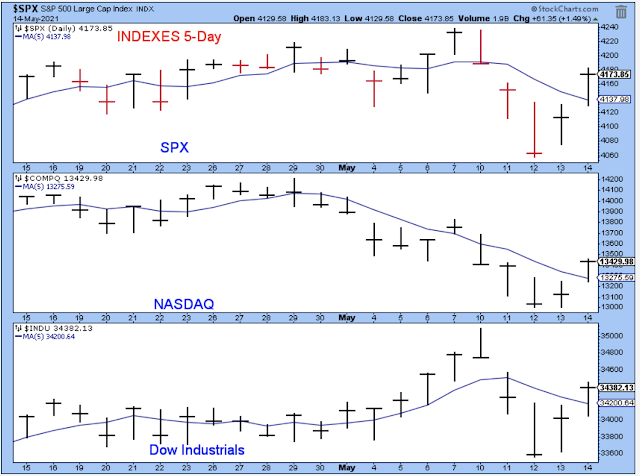 On Friday, May 14, the major indexes all closed above their five-day averages, which is the first requirement of a new uptrend.