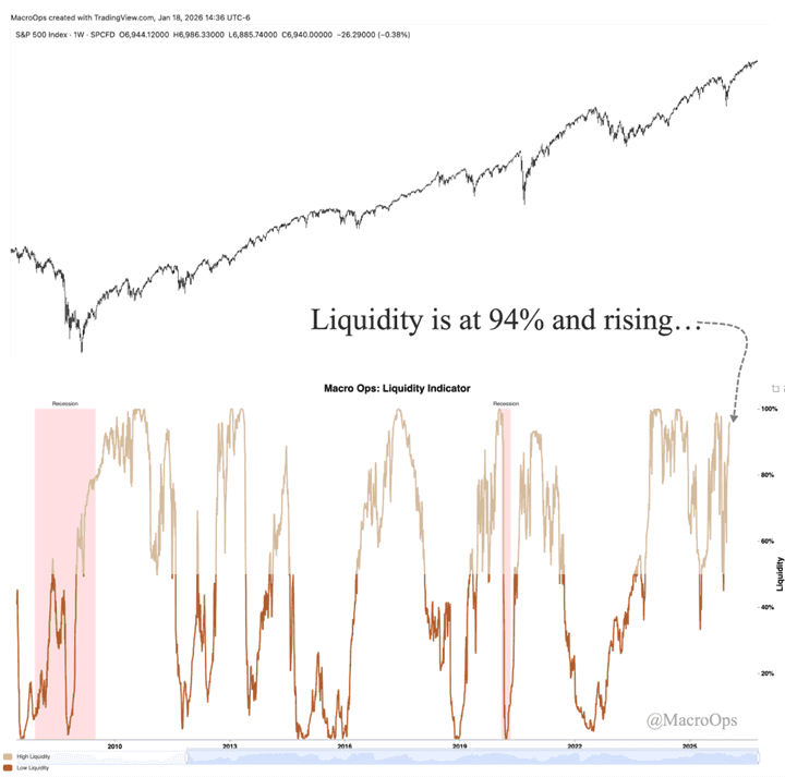 6. Our MO liquidity indicator is at 94% and rising. This is a flush regime which historically points to strong forward 6-12 month returns.