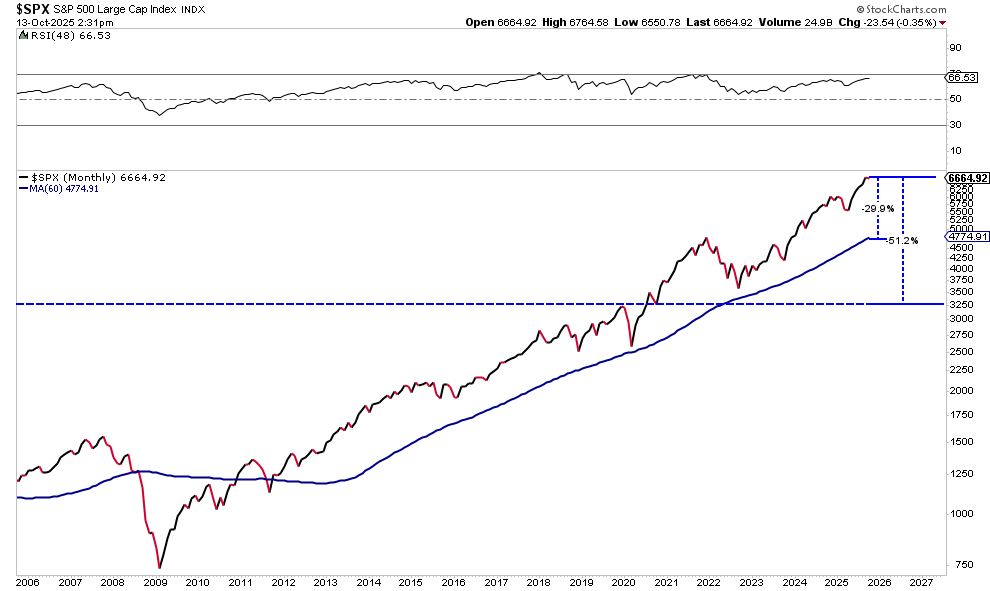Begin with risk. While it may seem like it can’t happen, assume a 30% to 50% drawdown. In the S&P 500, a 30% retracement would only reset the market to the current bullish trend line from 2009. A 50% retracement would only reset markets to the beginning of 2020.