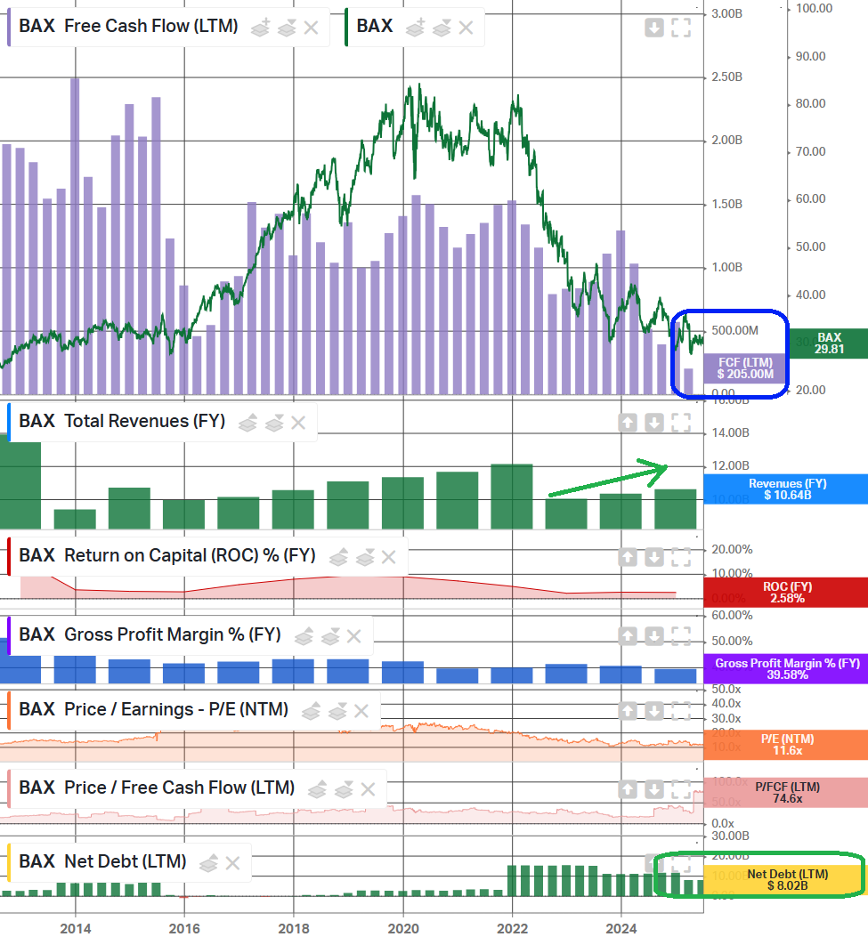 Once it becomes obvious, we expect the market to reward that progress with a meaningful rerating. Baxter currently trades at just 9x earnings, the lowest we have seen since 2003 when the company was dealing with patient deaths linked to contaminated dialysis machines. A move back toward the sector average and Baxter’s own historical 16-17x multiple feels inevitable once the dust settles.
