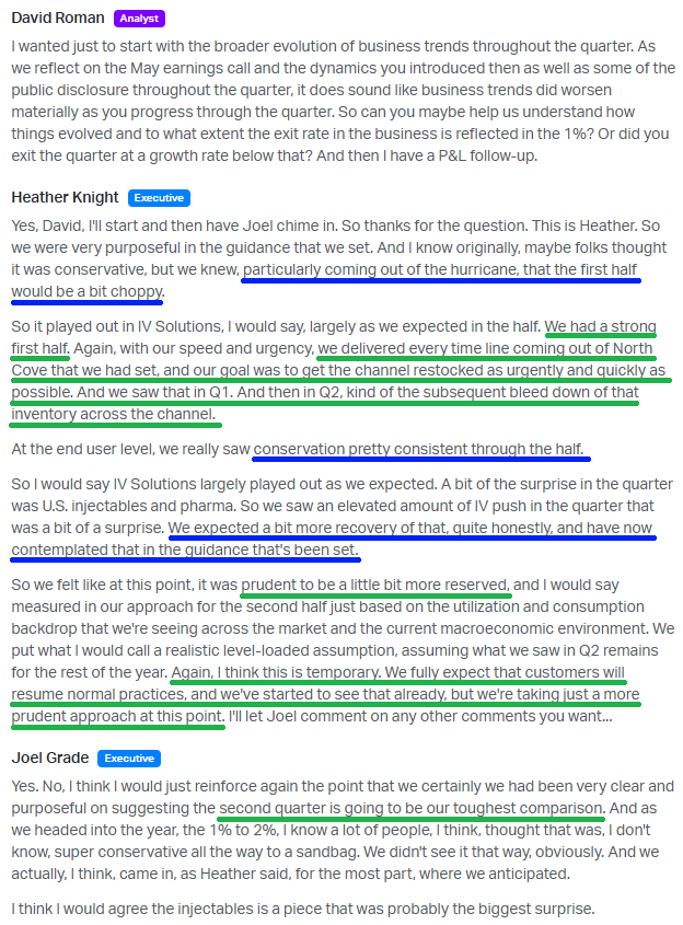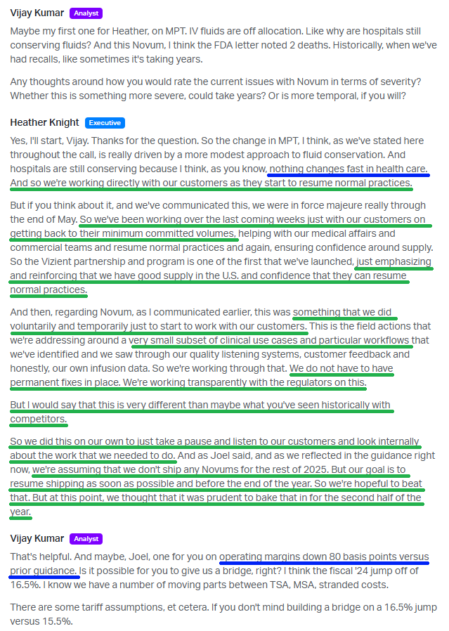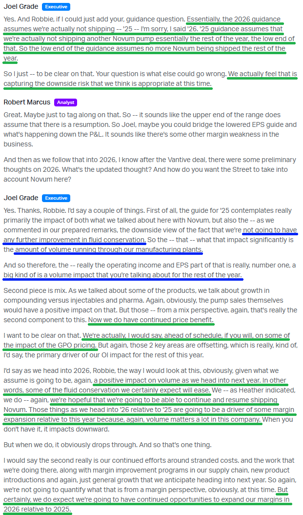 Take the fluid conservation story. Management has already seen improvement and expects more into the back half and into 2026, yet their outlook assumes zero recovery this year. And even if hospitals remain cautious, these IV fluid customers have minimum volume commitments. Either they buy more or they pay more.