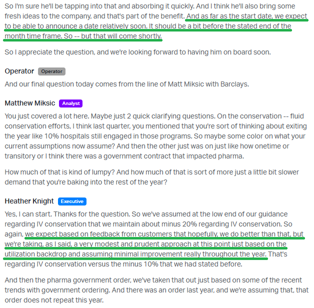 Here’s how we see it potentially playing out. Andrew Hider steps in this September. By his first (or second) earnings call in Q4/Q1, Baxter will suddenly report that Novum IQ is shipping again and flying off the shelves. Meanwhile fluid conservation trends have magically improved. Hider will be hailed as a miracle worker and the turnaround will suddenly feel obvious overnight. Tomorrow’s newspaper, today.