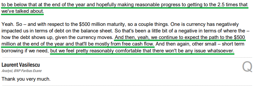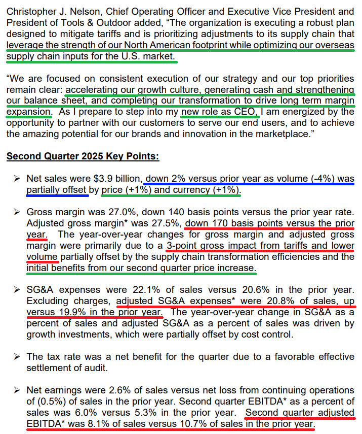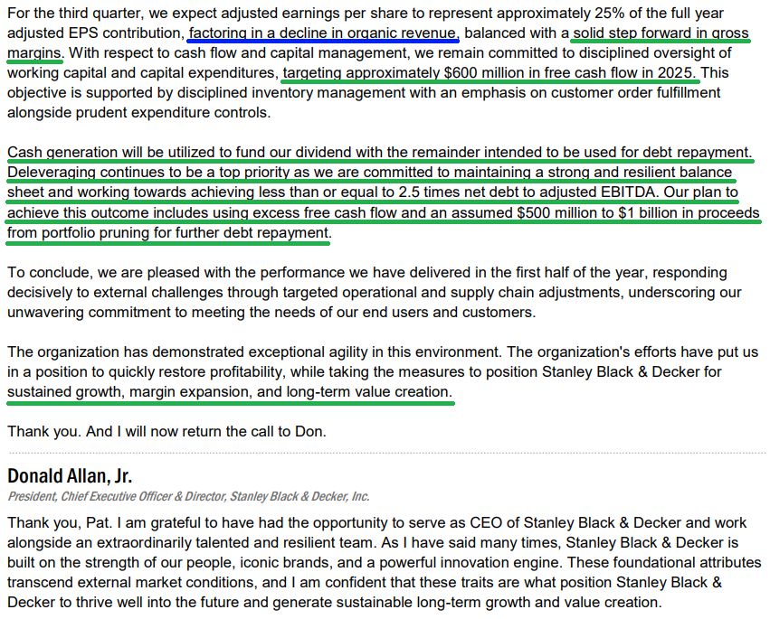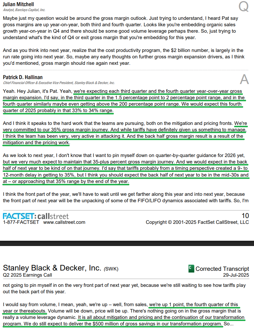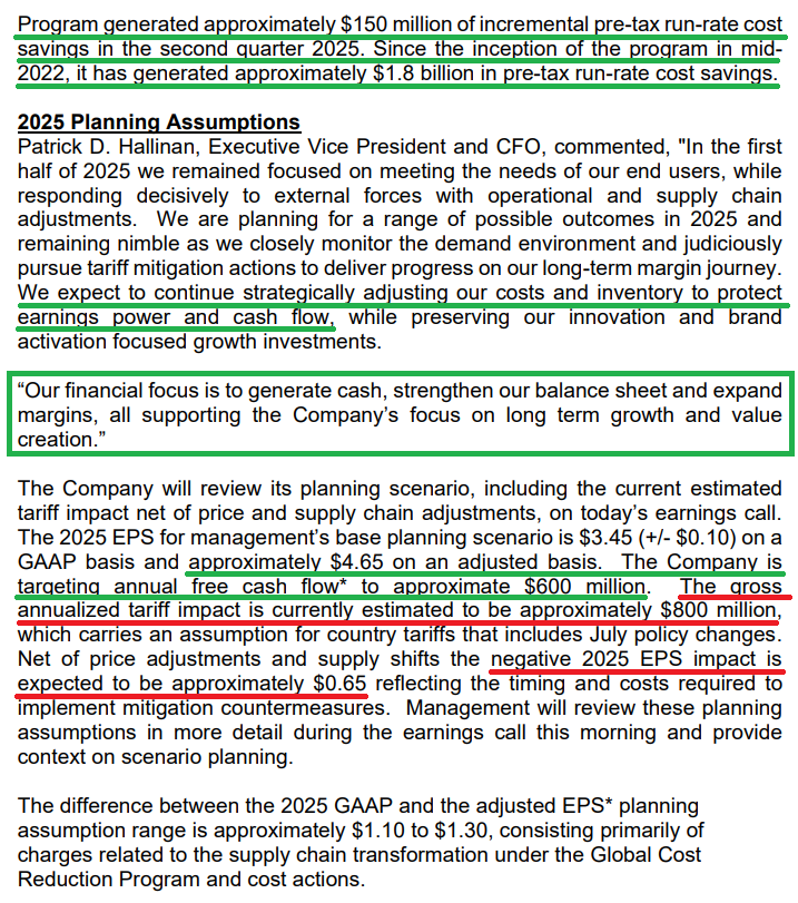 3) As we like to say, the #1 thing we want to see in any turnaround is free cash flow recovering. Management still expects free cash to be up versus last year’s $313 million, even after accounting for tariff impacts and excluding the sale of non-core assets.