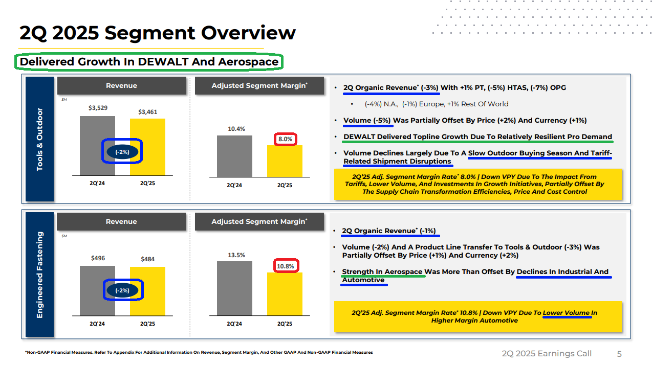 4) Aerospace remains a bright spot within the Engineered Fastening segment, delivering over 20% organic growth in Q2. The business reached a new high of $400 million in annualized run-rate revenue, supported by a strong multiyear backlog and solid growth outlook.