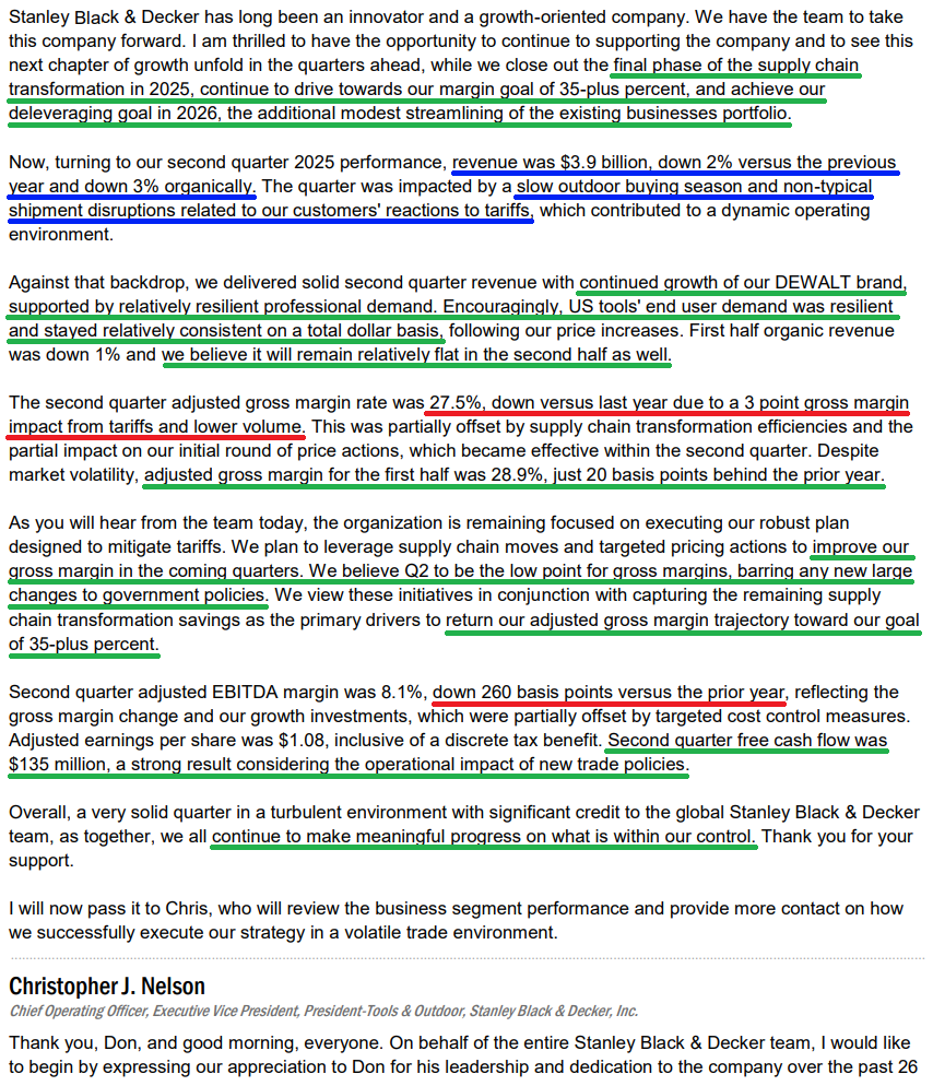 Despite headline numbers that CRUSHED expectations, reporting adjusted earnings of $1.08 per share versus $0.42 consensus and revenue of $3.95 billion in line with estimates, SWK’s solid second quarter and continued progress in the turnaround were overshadowed by the market’s tariff meltdown, turning what was a fundamentally strong print into what looked like a weak quarter.