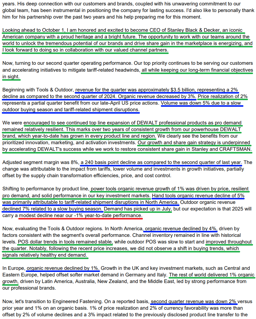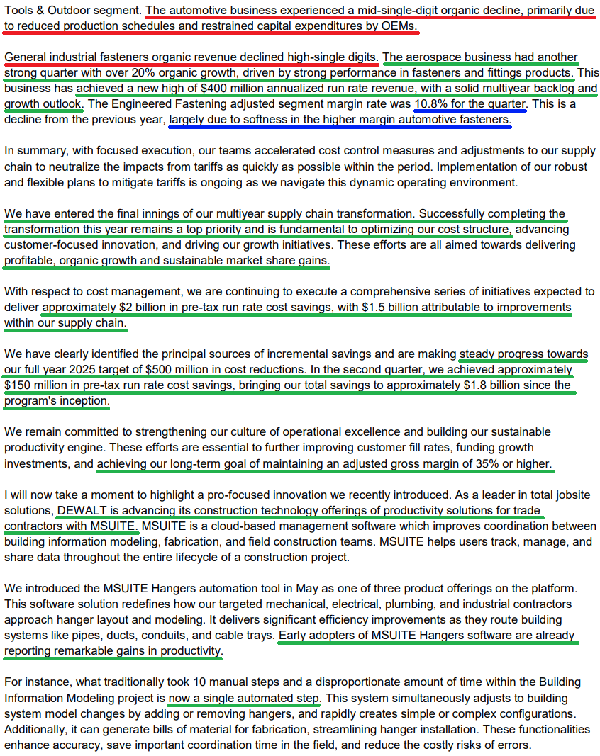3) DeWalt continued to perform well in Q2, with top-line growth driven by resilient pro demand. The brand has now delivered growth across every product line and region year to date, marking over two years of consistent expansion.