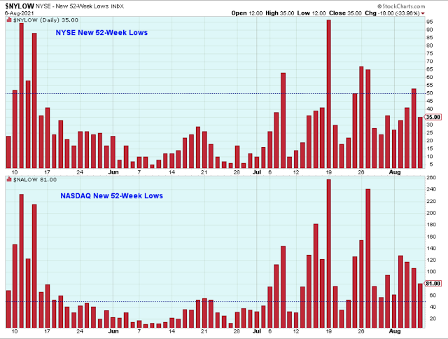 Here is the chart that continues to make me uneasy about stock prices because there are too many new 52-week lows on the Nasdaq. But let's see if the number of new lows settles down below 50 early next week before making too much of this today.