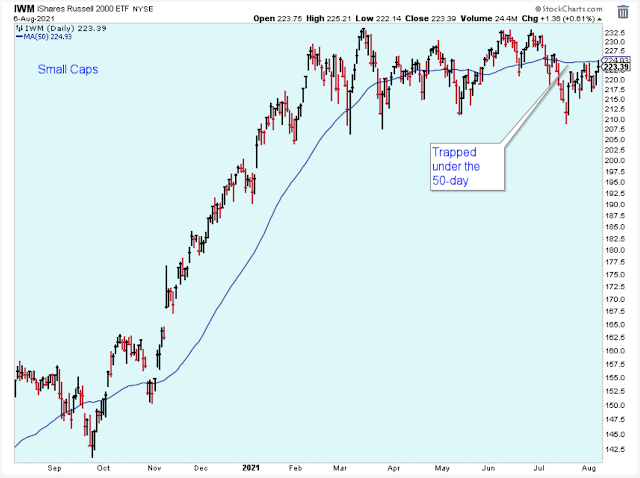 The small-caps had a good showing on Thursday and Friday. Let's see if they can rally from here. The first step is to start to trade above the 50-day average.