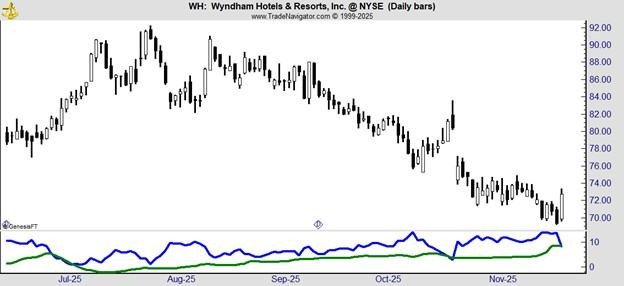 Recently, one of those patterns appeared in my service. The ITV indicator signaled that volatility in Wyndham Hotels & Resorts, Inc. (WH) had reached an extreme.