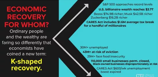 The wealth divide is widening which means that the stock market will crash if the wealthy decide to sell. It is a K-shaped economy.