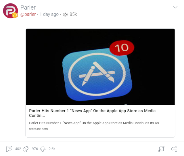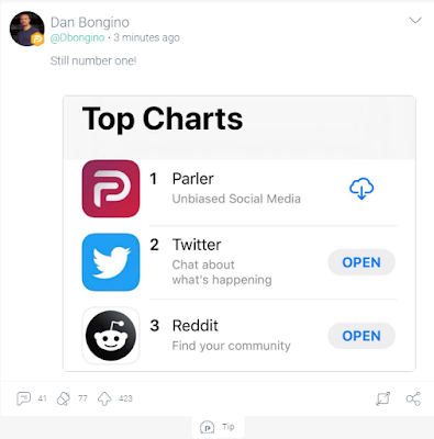The Twitter app has been knocked off its Number One perch as free speech social media platform Parler has risen to the top to take its place...(many Twitter users are switching to Parler for their town-square style free discussion).