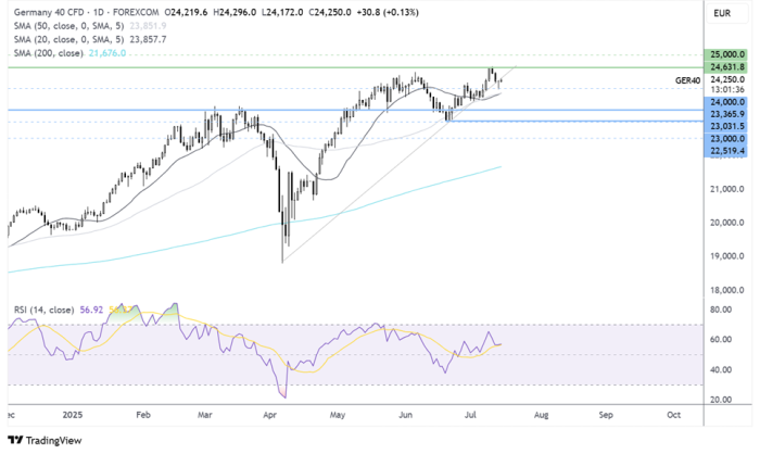 Later in the session, attention will be on US inflation figures, which are expected to rise to 2.7% up from 2.4%. Hotter inflation could drive a more hawkish Fed policy stance, impacting risk assets such as the DAX.