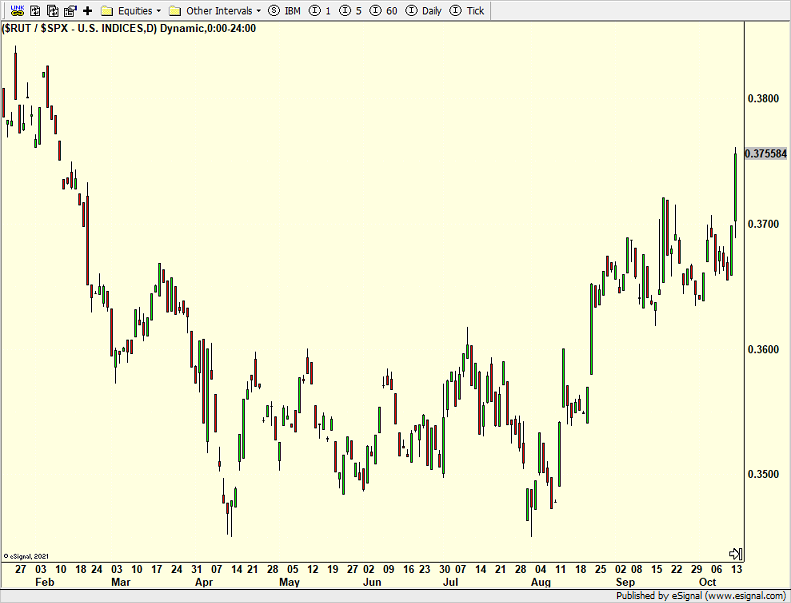 You know where money is going on an index level? The same place I have written about for six months, small caps. Below is a chart showing the small caps relative to the large caps. When the link goes up, smalls are beating the large. I think that trend continues into 2026, albeit not as strong as it has been.