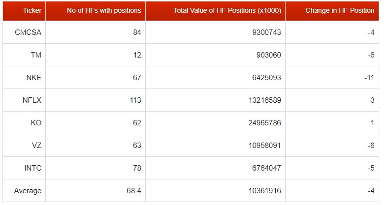 Let’s check out hedge fund activity in other stocks similar to Exxon Mobil Corporation. We will take a look at Comcast Corporation (Nasdaq:CMCSA), Toyota Motor Corporation (NYSE:TM), NIKE, Inc. (NYSE:NKE), Netflix, Inc. (Nasdaq:NFLX), The Coca-Cola Company (NYSE:KO), Verizon Communications Inc. (NYSE:VZ), and Intel Corporation (Nasdaq:INTC). This group of stocks’ market caps match XOM’s market cap.