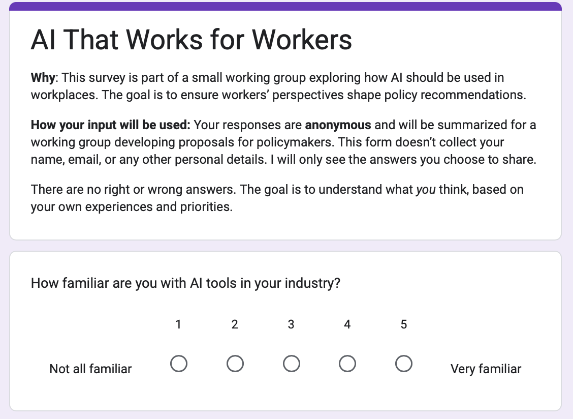 “If benefits of AI are shared with workers it can be helpful, but I don’t have much trust in tech CEOs to allow worker input into how it’s used. Unions will be necessary to ensure this.” - Tech worker