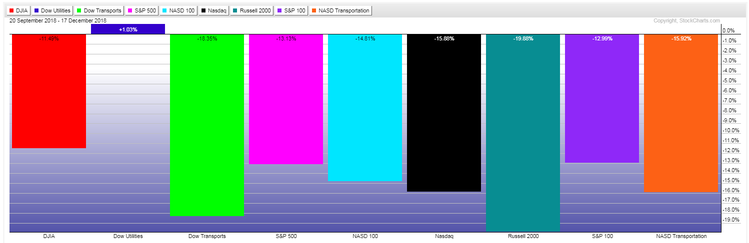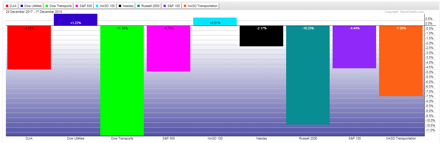 On December 17th, (yesterday) you will see from the first percentages gained/lost graph that 7 of the 9 Major U.S. Indices are in negative territory year-to-date.