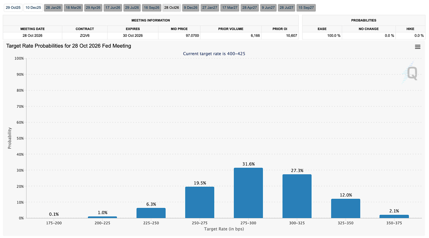 The Fed Funds rate now sits between 4.0% and 4.25% - and there are wild expectations on where markets believe the Fed funds rate will be come next October.