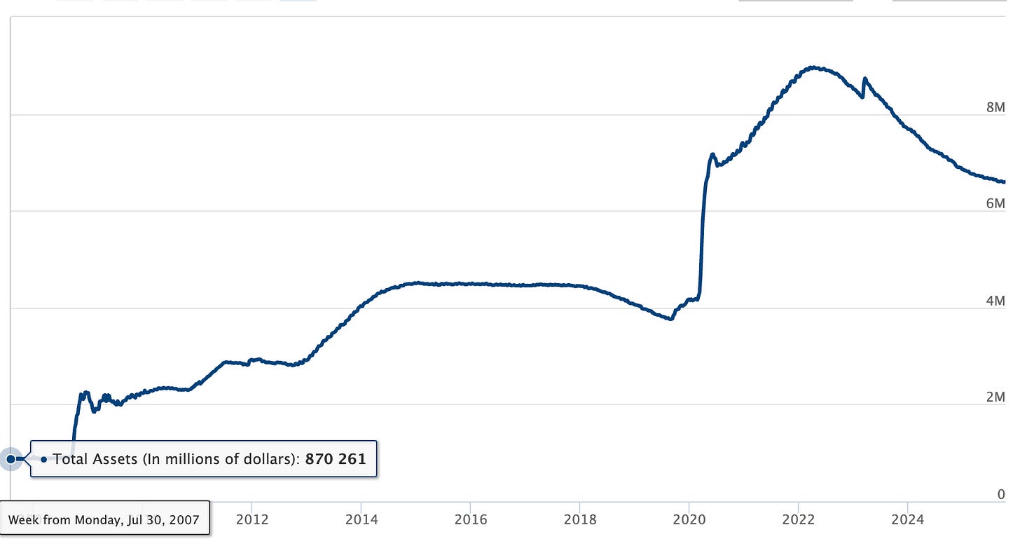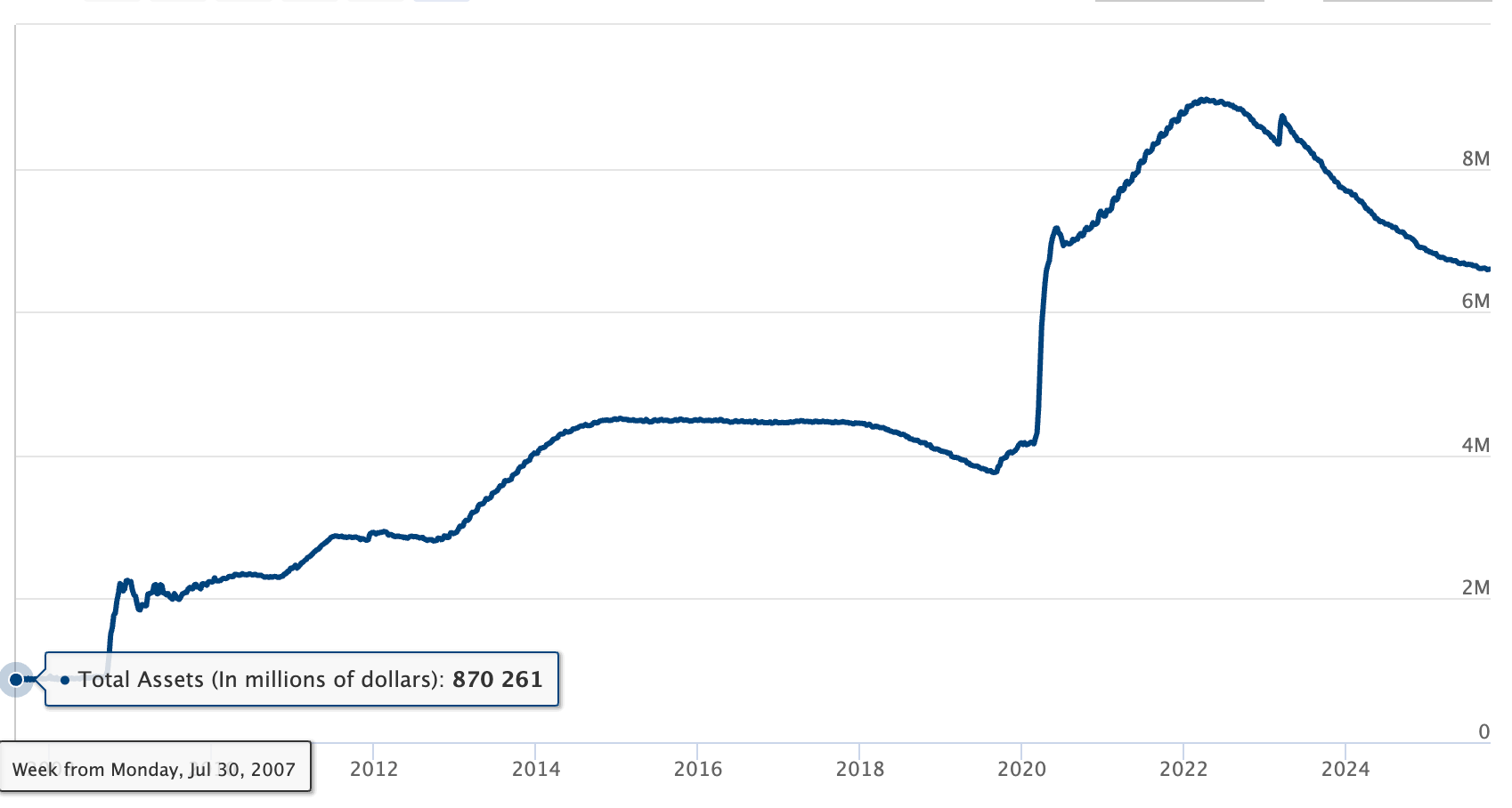 Today, the Fed Balance sheet is $6.6 trillion, and it’s going to have to rise over the long-term because our debt is unmanageable.