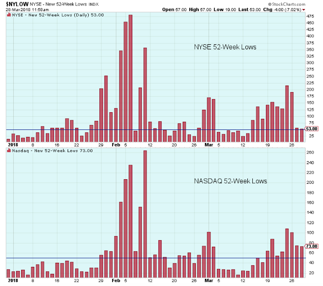 The number of 52-week lows is still a bit elevated which also confirms the short-term downtrend.
