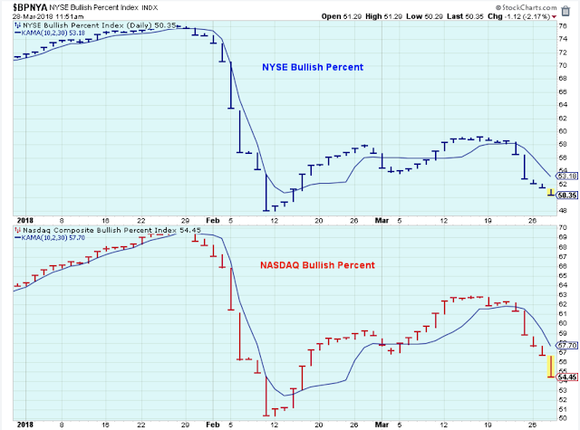 The bullish percents continue to point lower confirming the short-term downtrend.