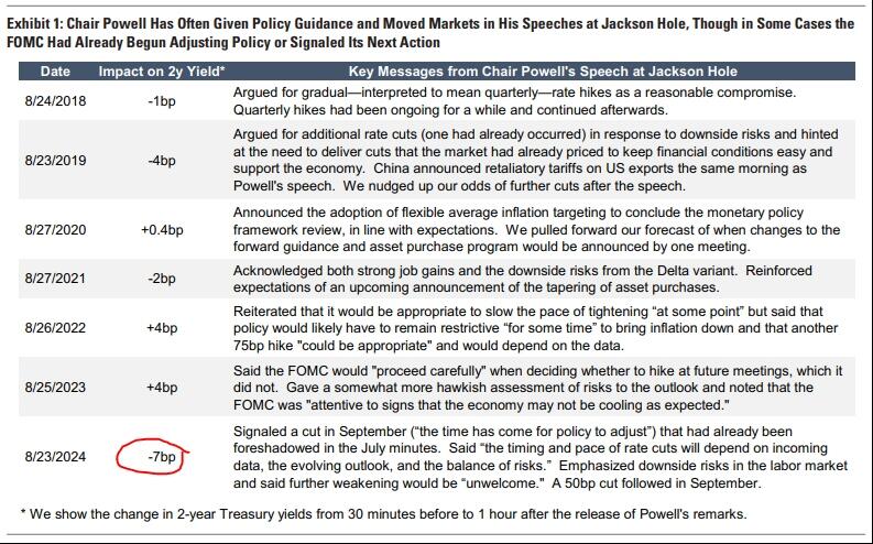 Bottom line, Goldman does not expect Powell to decisively signal a September cut, but the speech should make it clear to markets that he is likely to support one.