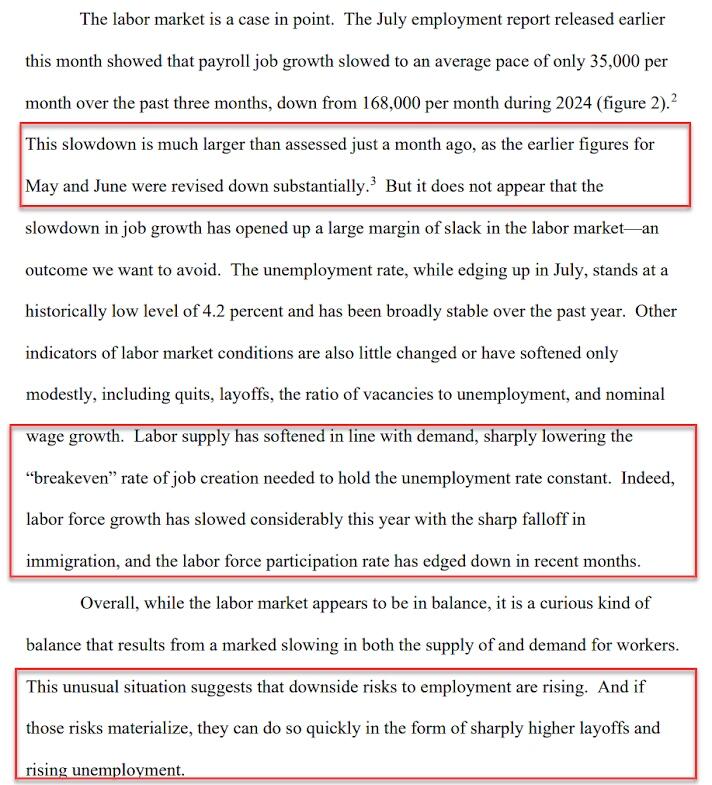 Most memorably, that the job market looks much weaker than it did on July 30.