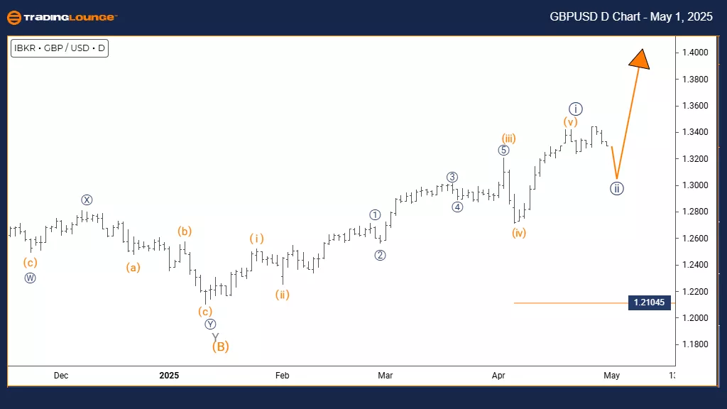 The daily analysis of GBPUSD shows a counter-trend correction unfolding inside a larger bearish movement. The pair has finished the navy blue wave 1 decline and has now started the navy blue wave 2 correction, continuing within the broader gray wave 1 downtrend. This setup suggests a short-term upward retracement before the primary bearish trend possibly resumes.