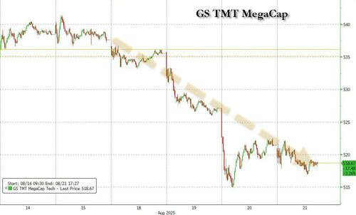 The tape is jittery, and no one wants to admit it. Five straight down days on the S&P has traders pacing the floor, with Goldman’s MegaCap basket bleeding red for the first time since Liberation Day. Call it what it is: the generals of this rally have been stumbling, and when the captains go down, the rank and file rarely hold the line.