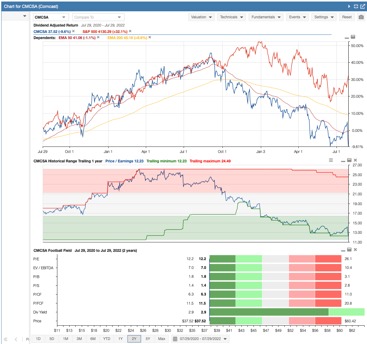 Today we highlight Comcast Corporation (CMCSA), the cable, phone, and content giant. According to Stock Rover*, the stock price was down about 24% in 2022 and 343% in the past 1-year. Comcast’s stock price is down because of worries over subscriber growth.
