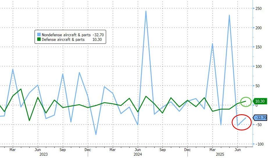 Once again, non-defense aircraft orders plunged (while defense aircraft orders rose)...