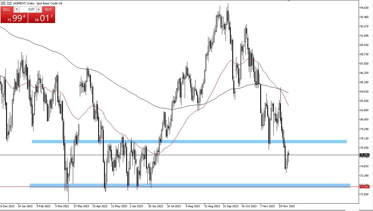 Brent oil experienced a minor decline during the trading session, only to witness the emergence of buyers. The $78 level above holds significance, having previously acted as a support level and now expected to serve as resistance. It's reasonable to assume that short sellers will seek to capitalize on their profits as the holiday season approaches, potentially leading to fluctuations in trading volume. In the event of a downward movement, the $72 level beneath stands as a substantial support level.