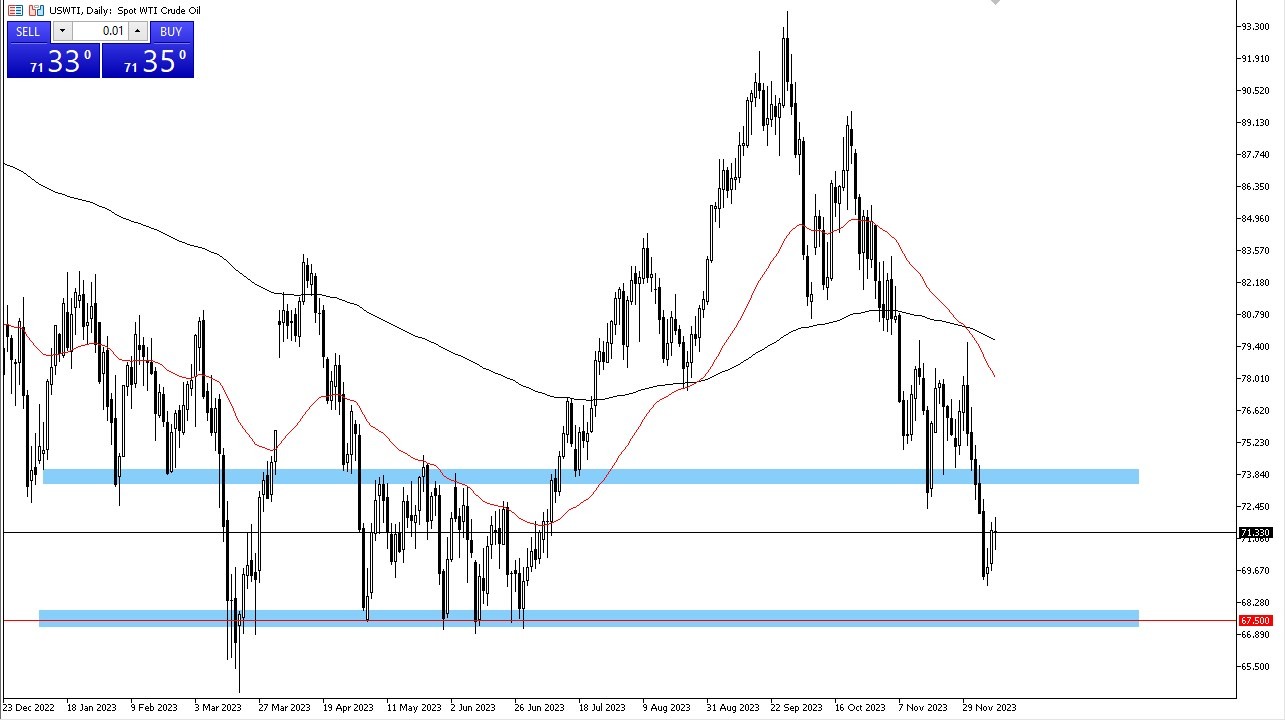 The West Texas Intermediate (WTI) Crude Oil market displayed a degree of noise and choppiness during Monday's trading session, reflective of its ongoing stabilization efforts. There's a notable focus on the $74 level, which once served as a significant support level, thereby invoking a sense of "market memory." A successful break above this level could potentially pave the way for a move towards the $78 mark. Conversely, if a reversal were to occur at this juncture, the market could decline to as low as $67.50, a level that has previously demonstrated substantial support.