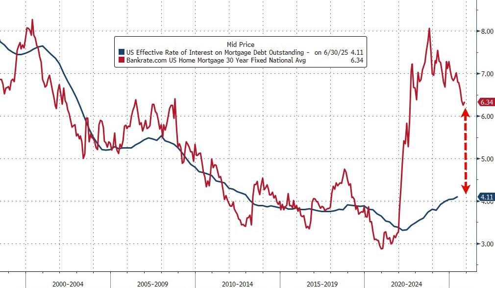 This morning's existing home sales data (admittedly for October) will give us a further glimpse into the reality oh home-buying vs home-selling as the gap between current mortgage rates and the average existing mortgage rates remains vast...