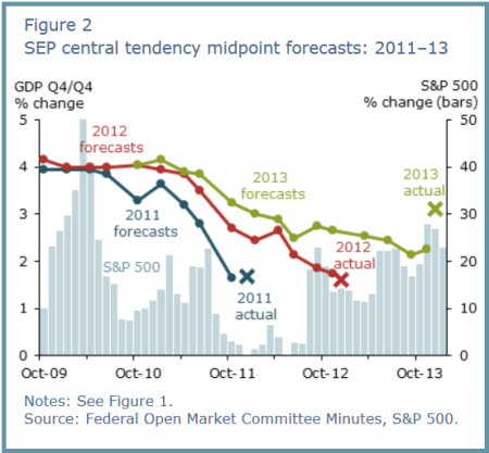 Since 2007 nearly every Fed economic forecast has been on the optimistic side.