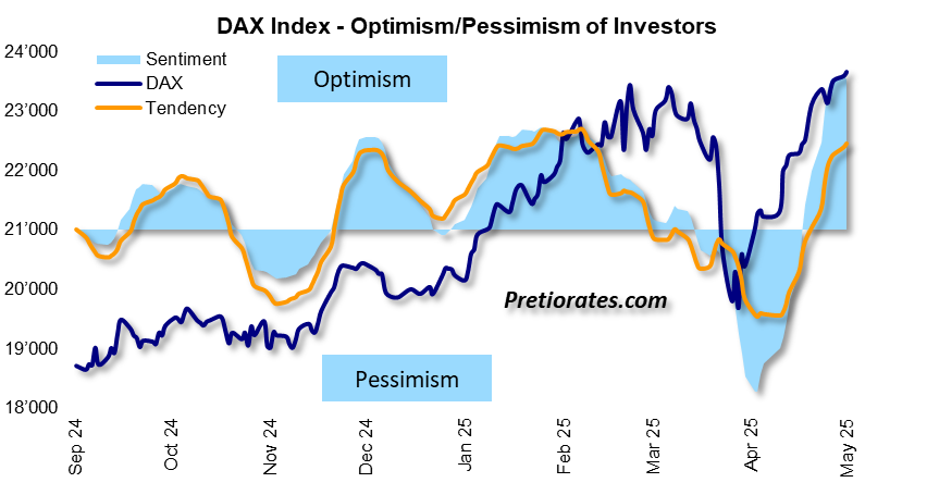 And Germany? It takes the cake. Despite geopolitical uncertainties, economic concerns, and political cacophony, the DAX is climbing to new heights – accompanied by an unprecedented high in sentiment.